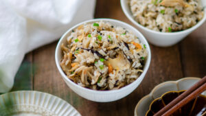 塩麹で舞茸とひじきの中華風炊き込みご飯