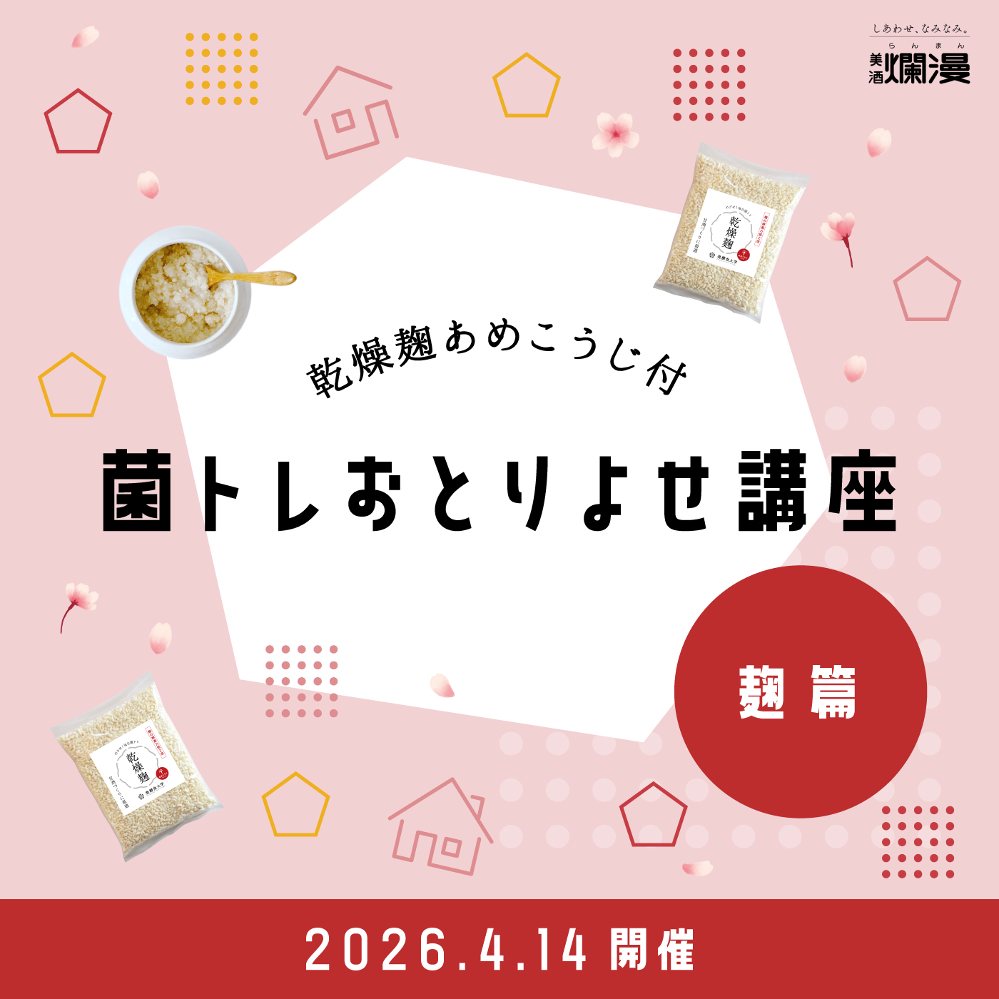 今回の菌トレおとりよせ講座では、「あめこうじ」を唯一乾燥麹として製造している、秋田の銘酒「美酒爛漫」でお馴染みの醸造元 秋田銘醸さんに講義をしていただきます。