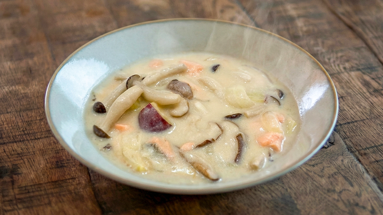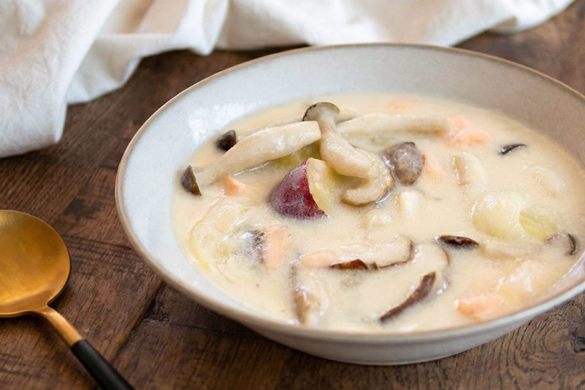 鮭とさつまいもの豆乳シチュー|ルーなし米粉と酒粕でコク旨レシピ