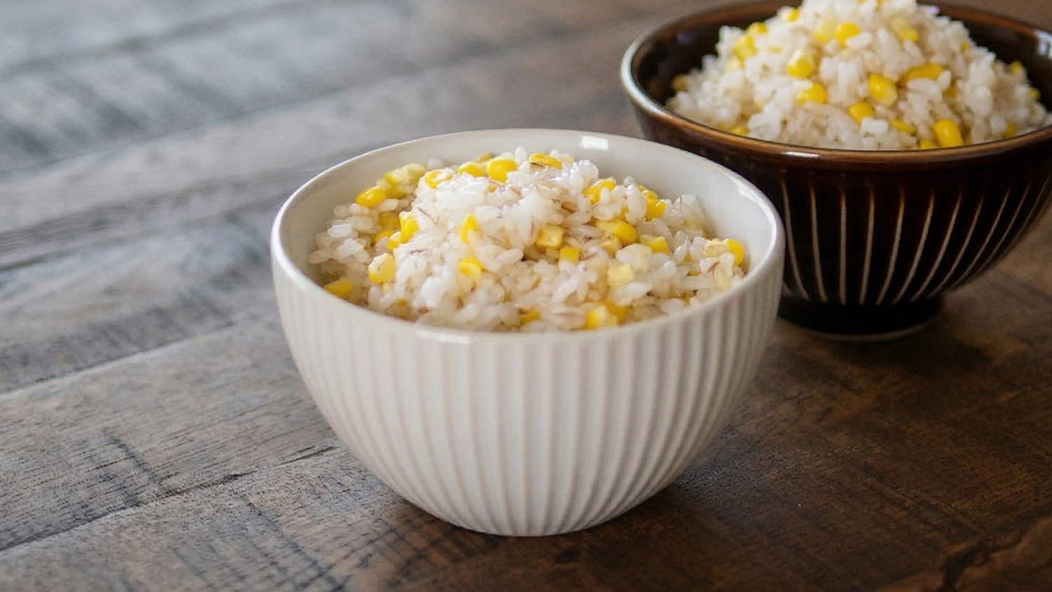 とうもろこしが出回る時期に、ぜひ一度お試しください。炊飯器におまかせするだけの手軽さで、素材の美味しさをしっかり味わえる一品です。