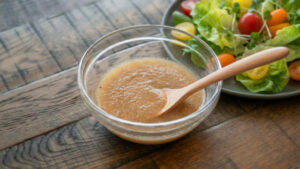 - ボウルに<タレ>を混ぜ、1と2の具材を加え合わせる。