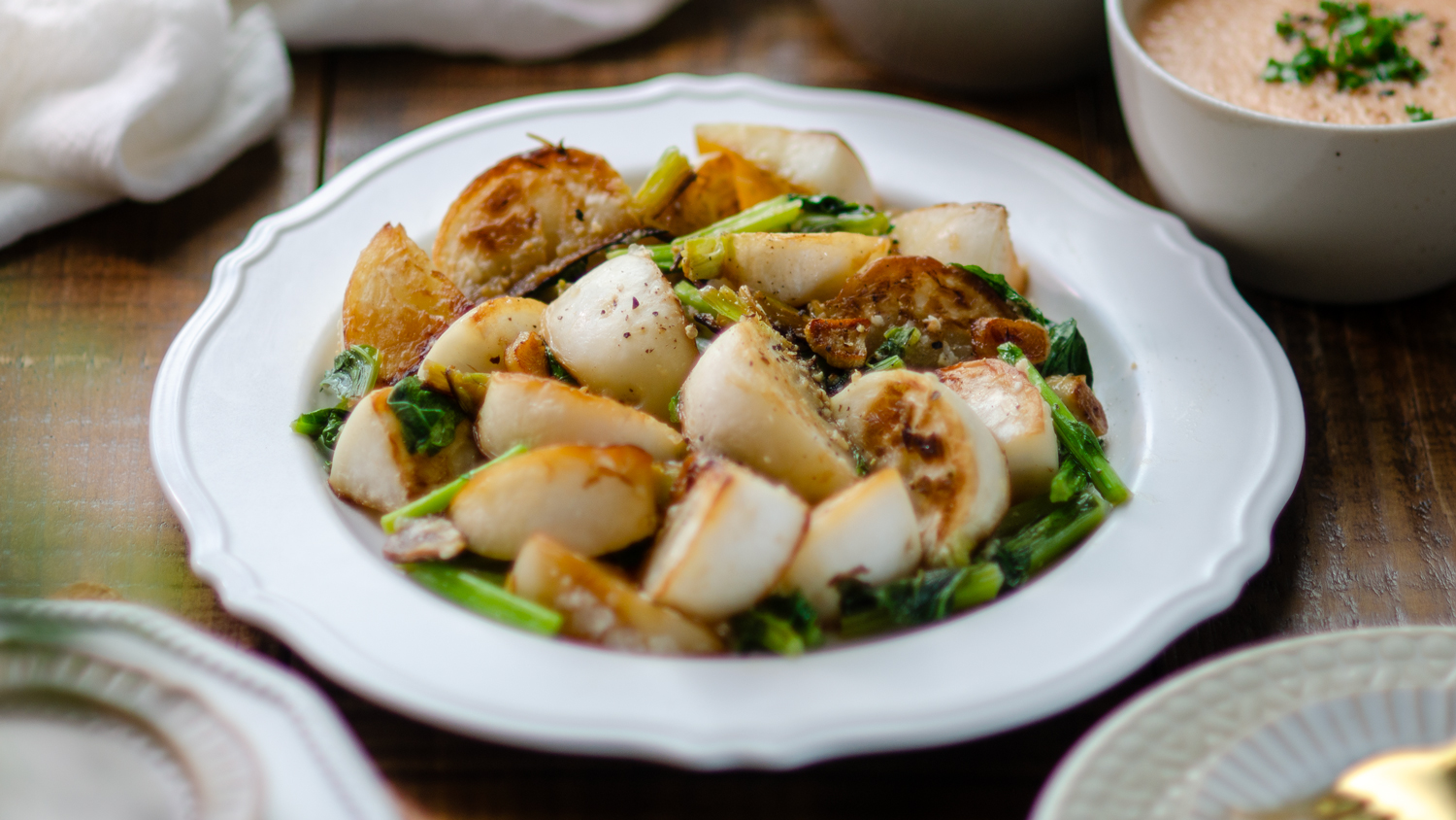 - カブは皮ごと使います。皮を剥かずに焼くことで、加熱しても形が崩れにくくなり、カブ特有の甘みと栄養を逃さず味わえます。