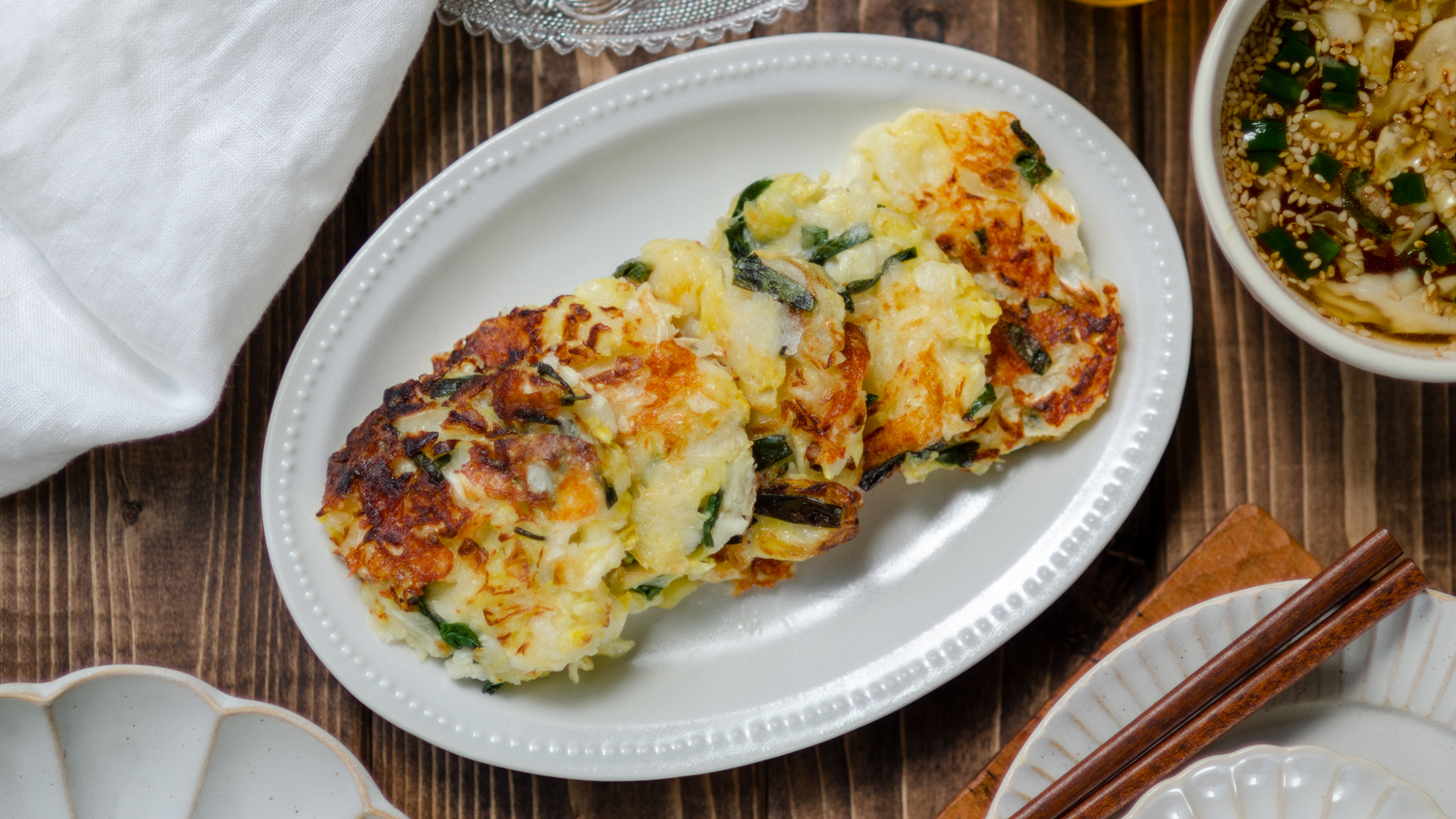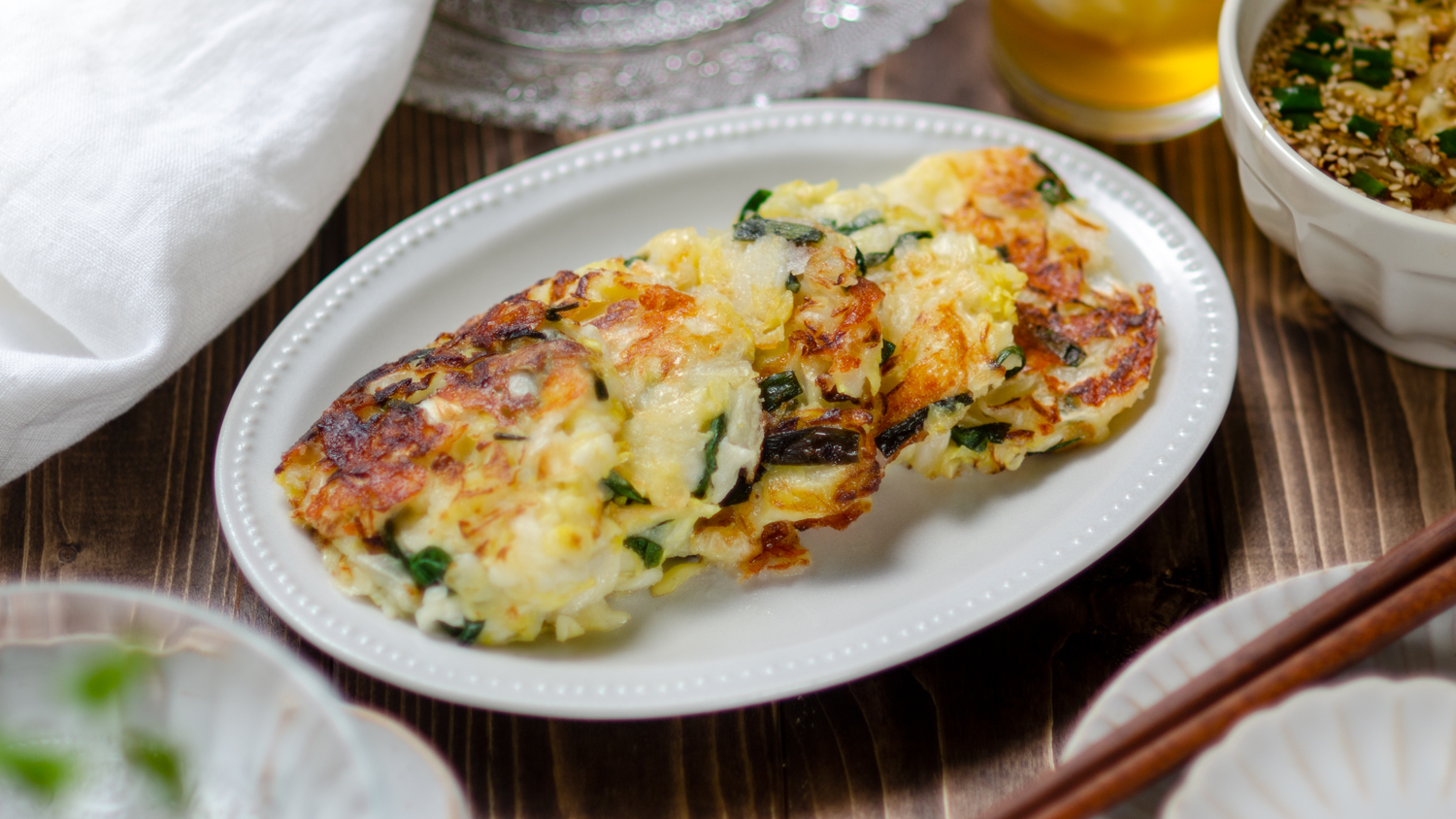 キャベツの甘みとチーズのコクが香ばしく広がるキャベツのチーズ焼き。シンプルな材料で手軽に作れるのに、子どもから大人まで喜ばれる一品。とろりと溶けたチーズと米粉の香ばしい焼き目が加わり、チヂミやお好み焼き感覚で楽しめます。フライパンで焼くだけの簡単レシピなので、忙しい日のあと一品にも、子どものおやつにもぴったり。ビールやワインとも相性抜群。キャベツがたくさんあるときや、あと一品欲しいときにもおすすめです。