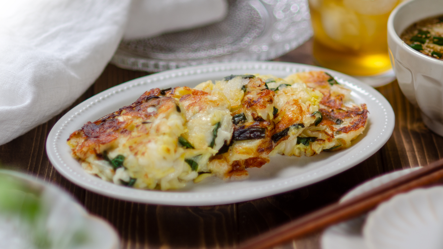 - フライパンに米油をひき、好みの大きさに広げ中火で両面焼き色がつくまで焼く。