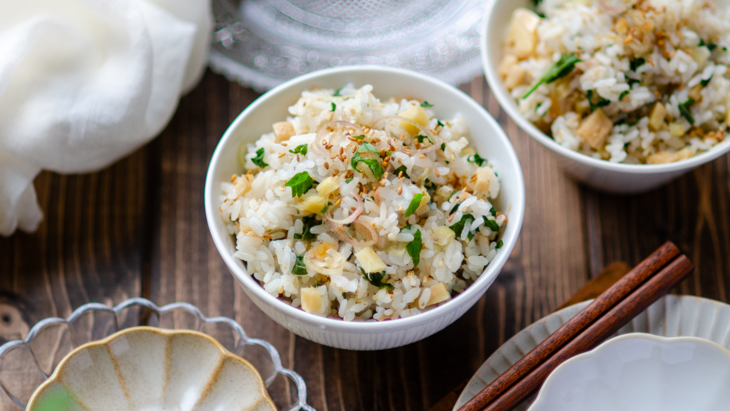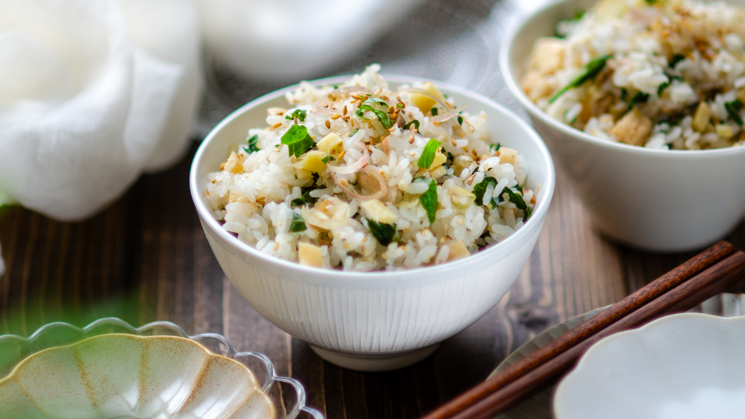 塩麹で新生姜と薬味のおかか炊き込みご飯