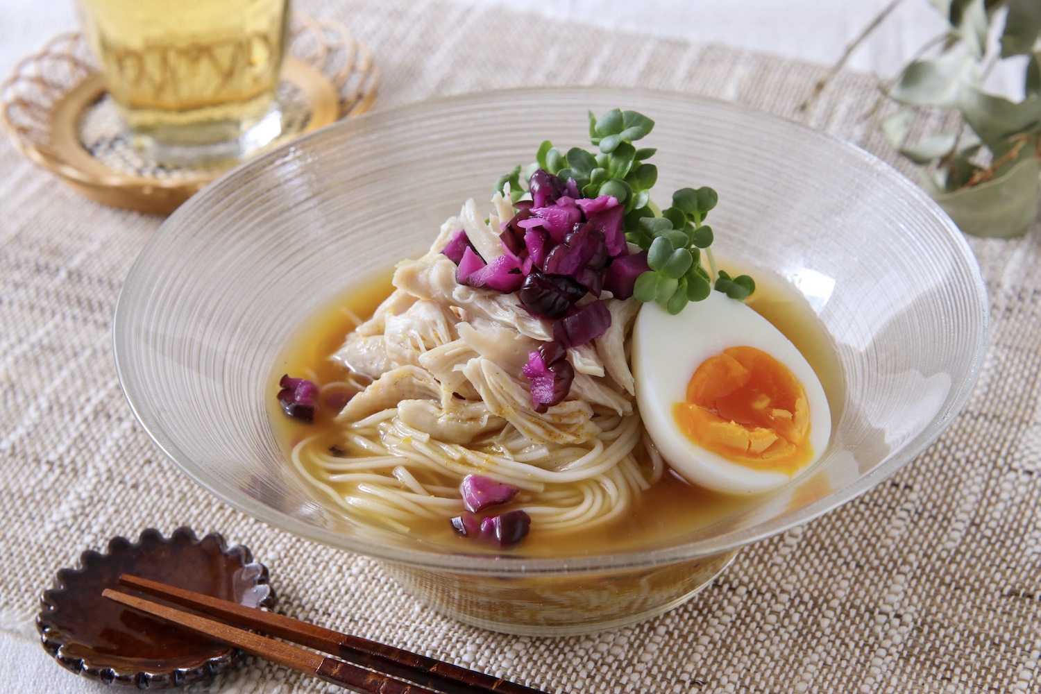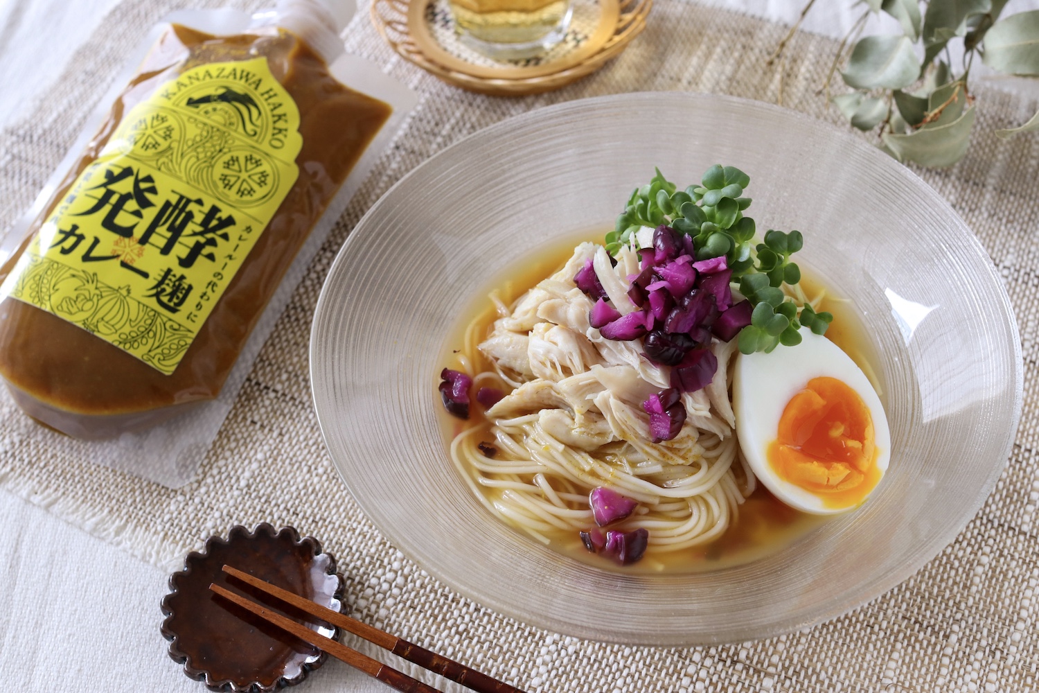 カレー麹で蒸し鶏のぶっかけカレーそうめん
