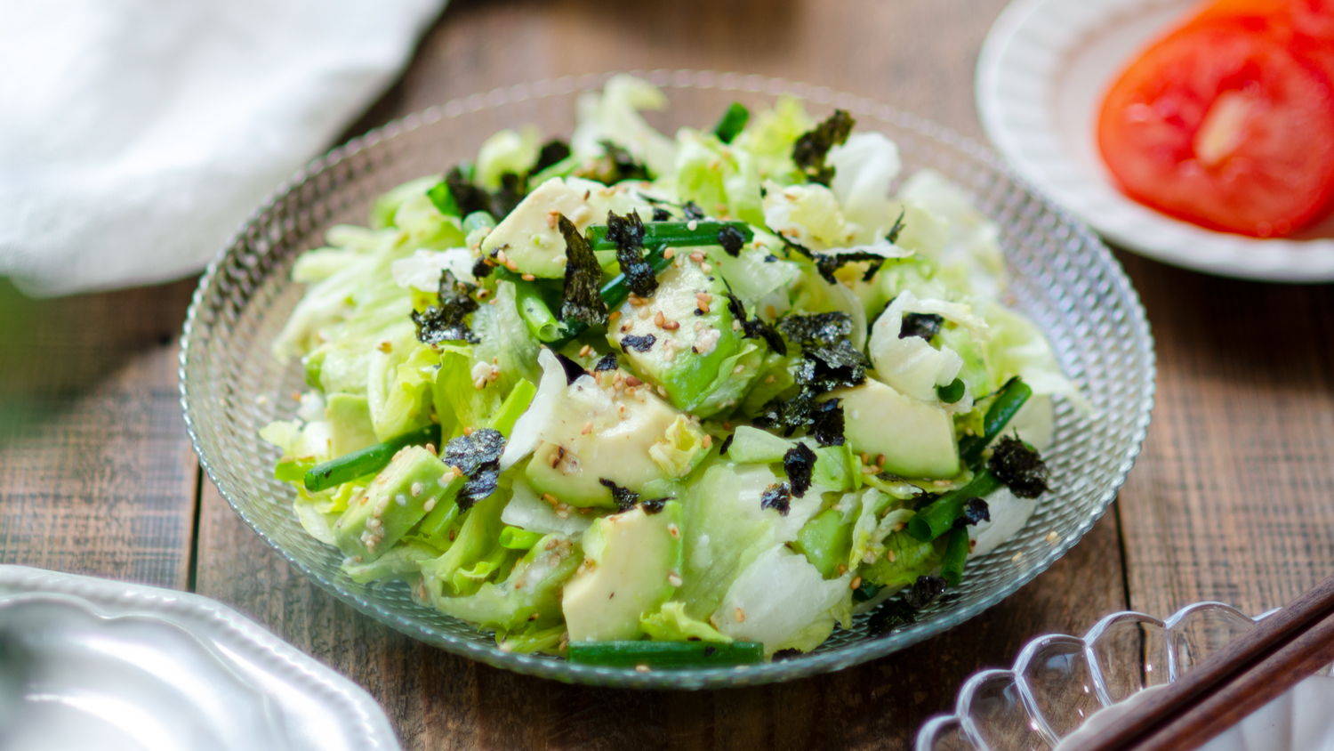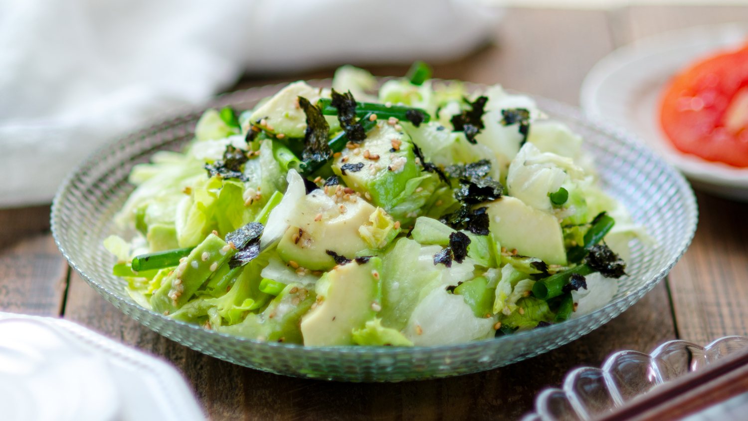 レタスのシャキシャキ食感が美味しいアボカドサラダ。塩麹のまろやかな塩気とコクがクリーミーなアボカドと相性抜群。ゴマ油の香りが食欲をそそり、酢の程よい酸味で後味さっぱり。仕上げにちぎった海苔を散らせば、磯の香りがふんわりと広がり全体の風味がぐっと引き締まります。韓国海苔を使えば、さらに香ばしさと塩気が加わります。火を使わず手早く作れ、おつまみにもぴったりです。