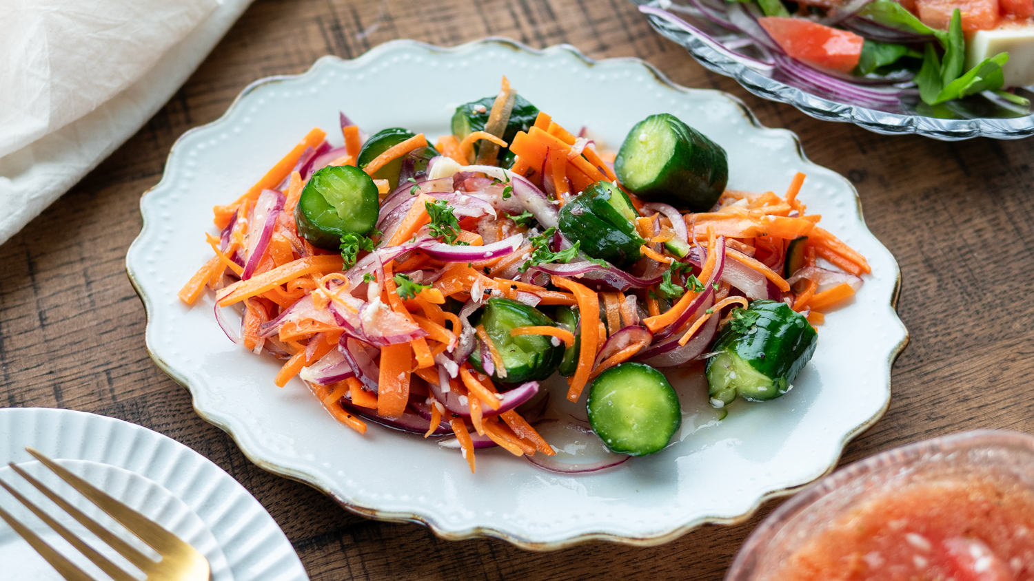 カラフルな野菜を使った食卓を華やかにしてくれるマリネ。野菜は塩麹で塩もみしておくことで、味のなじみや食感が一層引き立ちます。パンや肉料理に添えても相性抜群。シャキッとした歯ごたえと鮮やかな彩りが、見た目にも食欲をそそります。爽やかな酸味とほんのり甘みが広がるさっぱり食べられる一品。作り置きにもおすすめです。