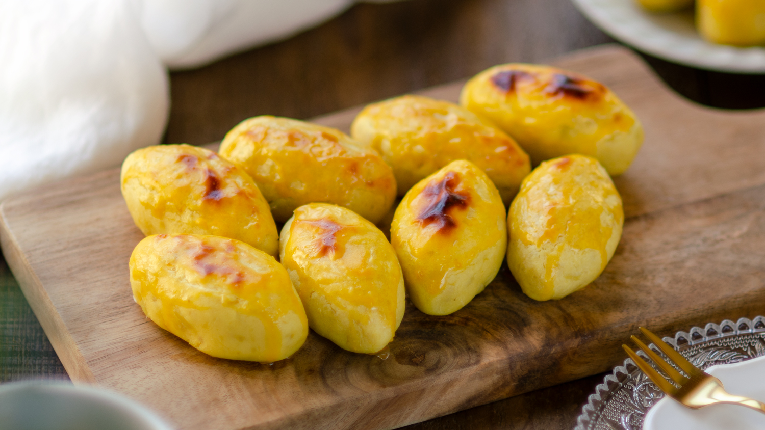 - 好みの大きさに成形し、卵黄を塗ってオーブントースターで焼き色がつくまで6〜7分程焼く。