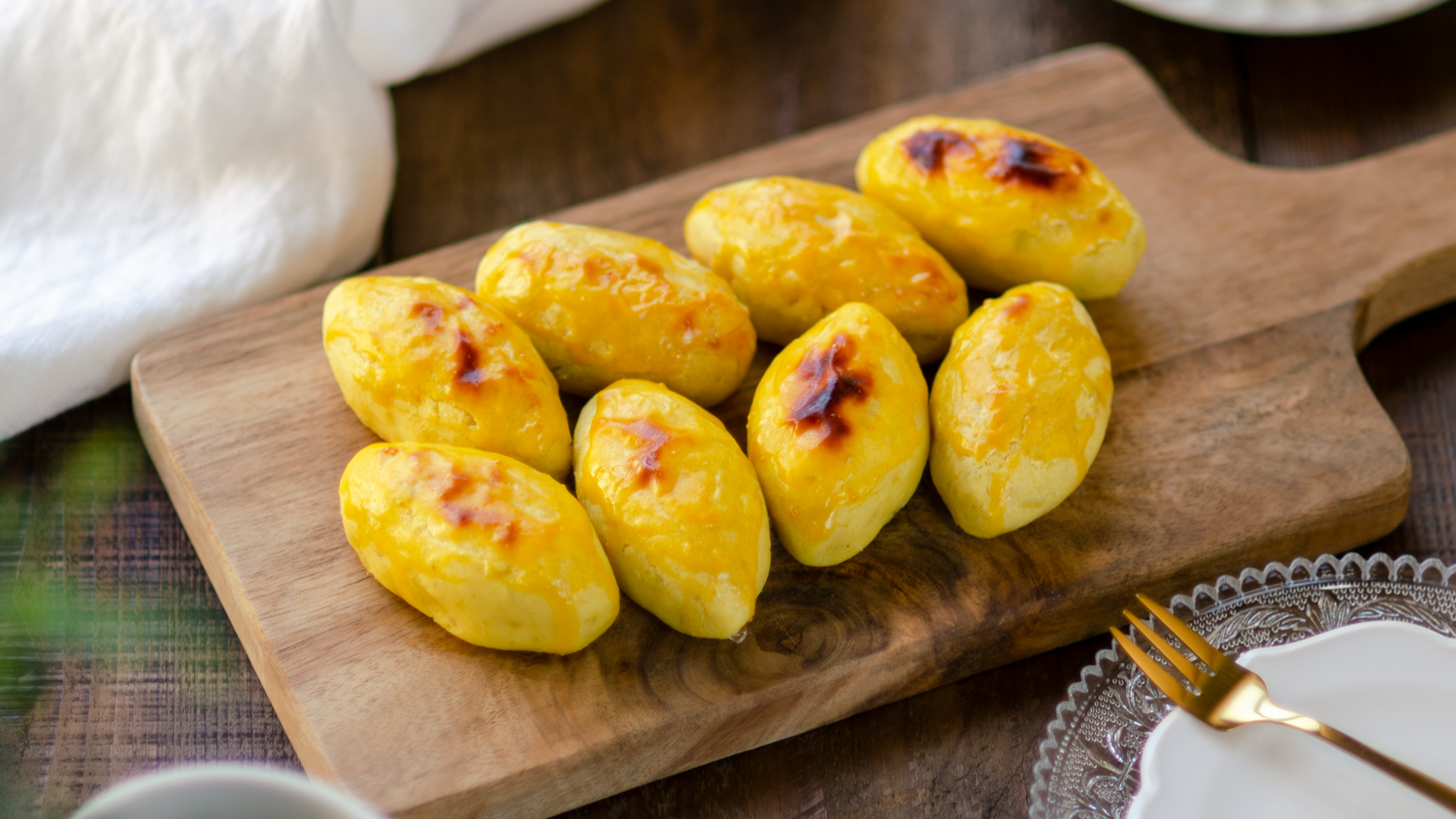 さつまいもの優しい甘みと、酒粕や味噌の風味を組み合わせた和の味わいが楽しめるスイートポテト。酒粕を加えることで、ほんのり芳醇な香りとコクが広がります。味噌を合わせることで甘さに深みが出て、和菓子のような風味が感じられる仕上がりに。裏ごし不要でフォークでつぶすだけ。材料を混ぜてオーブントースターで焼くだけで簡単に作れる、優しい甘さのスイーツです。