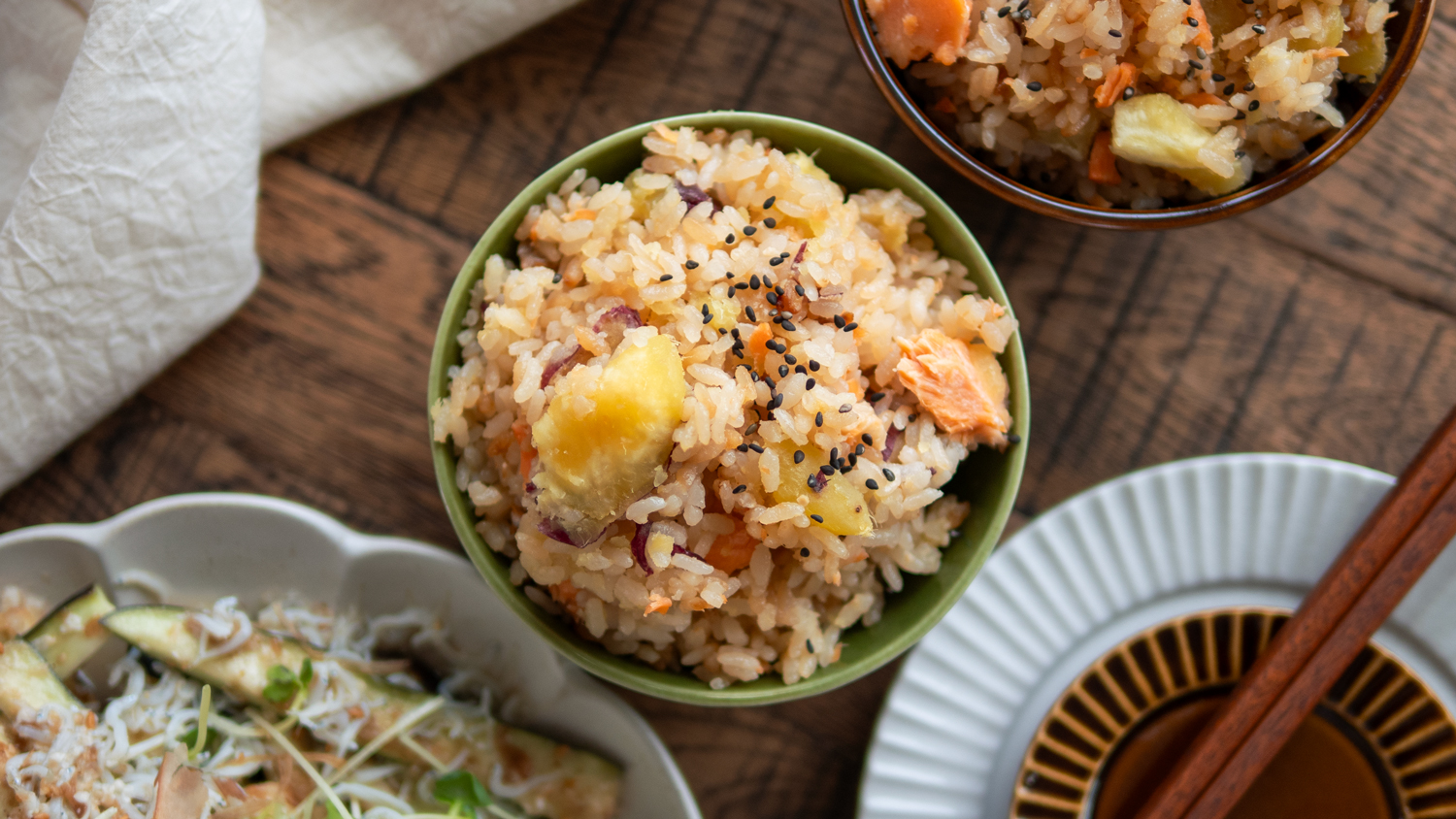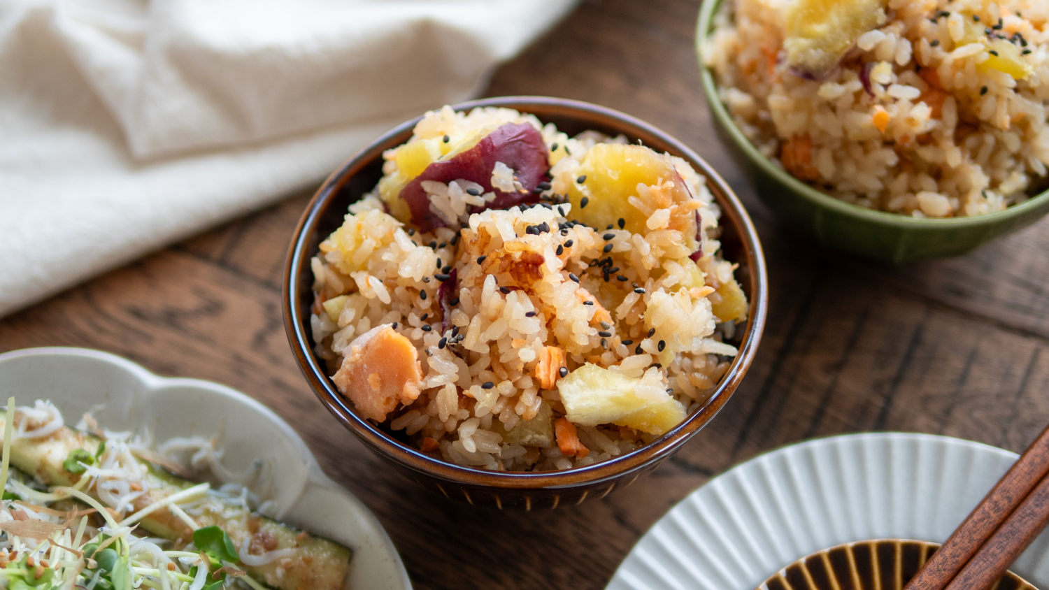 塩麹で丸ごとさつまいも鮭ご飯