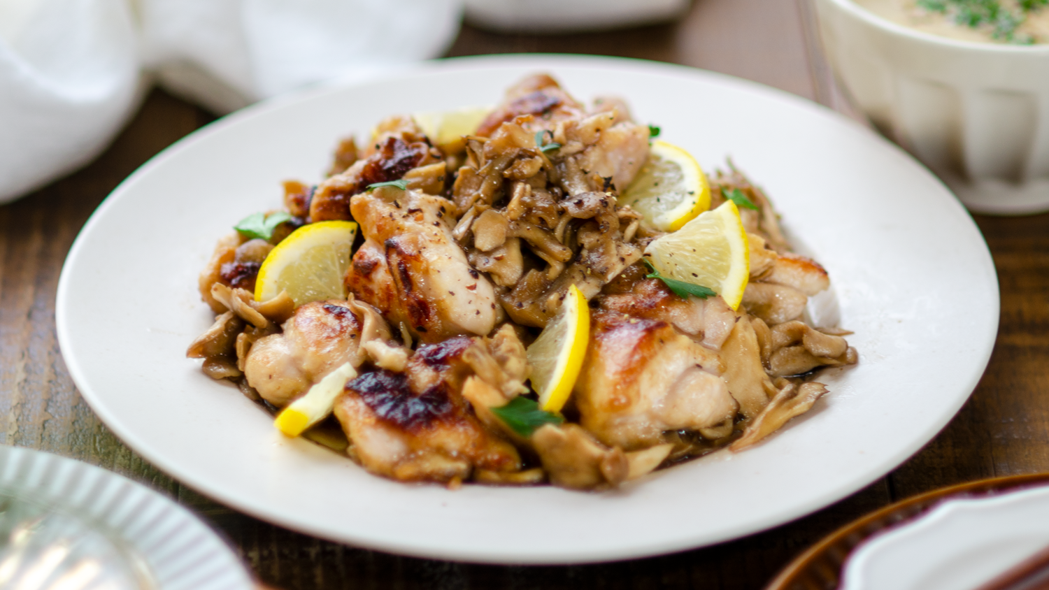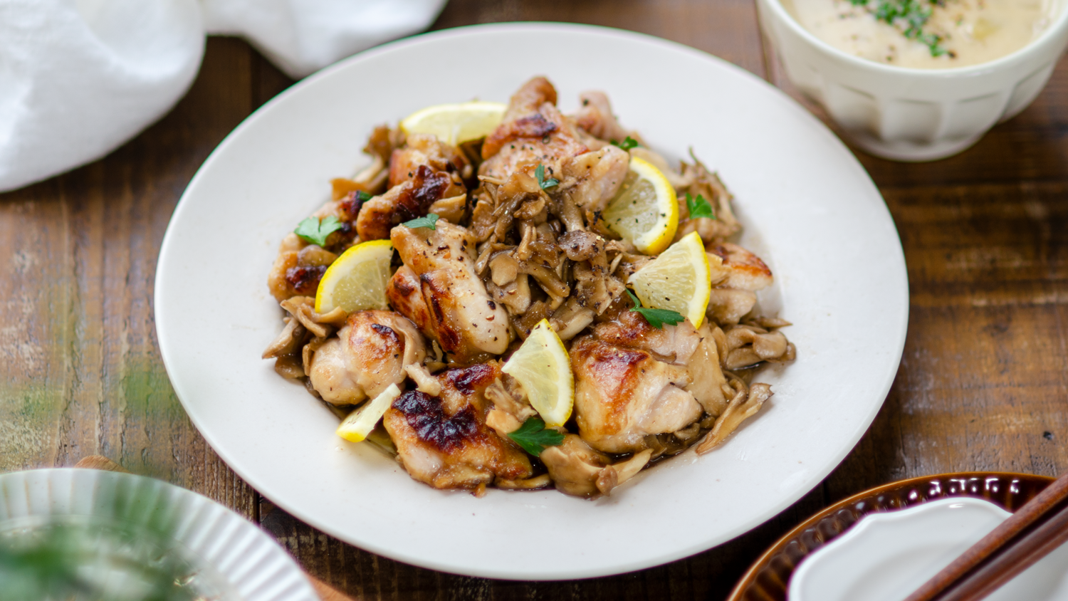 塩麹で舞茸と鶏もも肉のレモンソテー