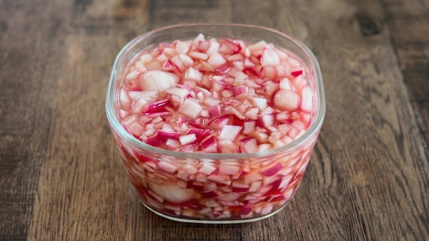 - すぐに食べても美味しいですが、一晩置くと玉ねぎの赤みがより鮮やかになり、味がなじんでさらに美味しくなります。