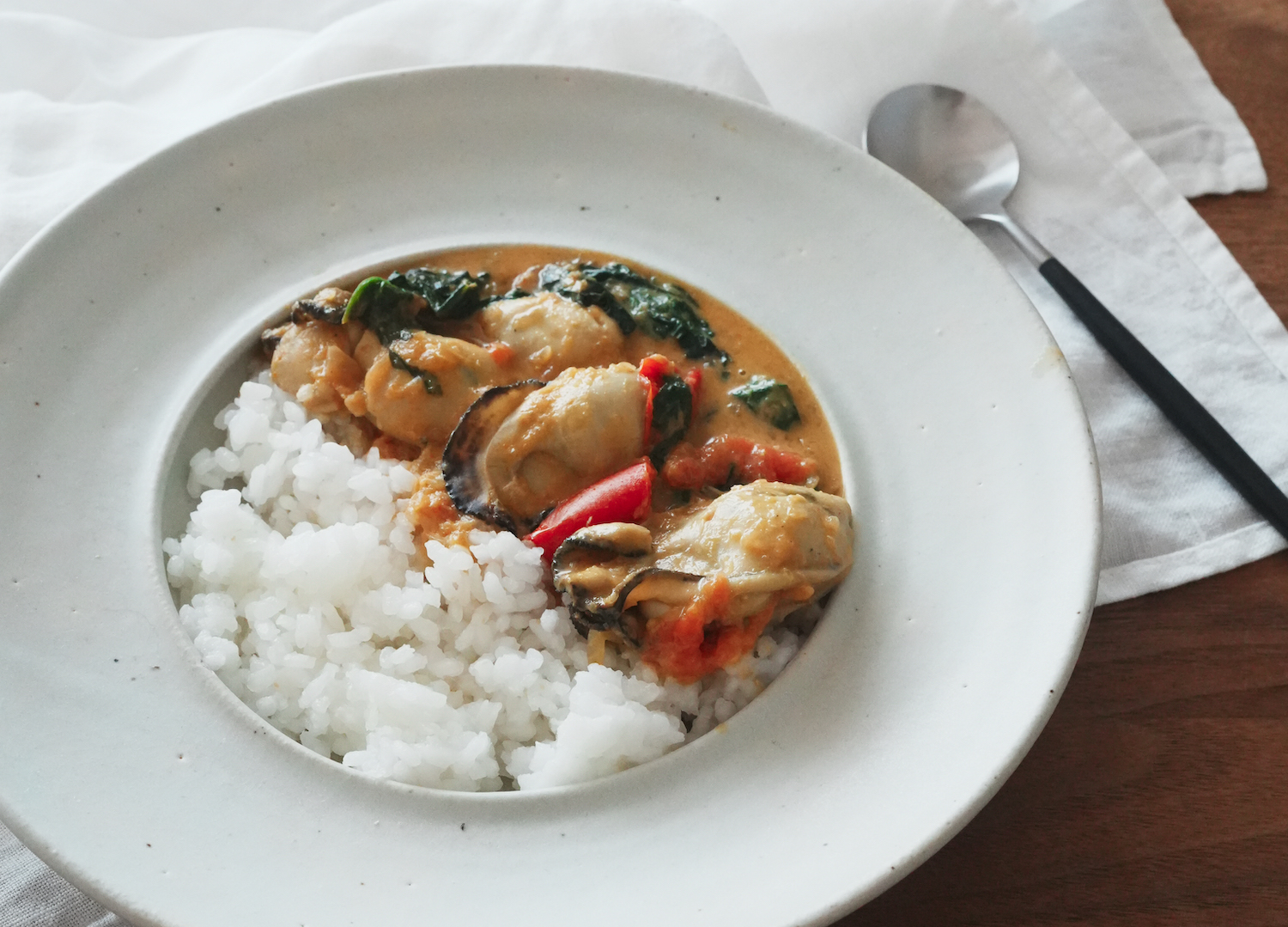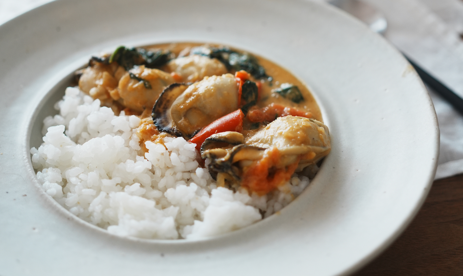 うま味たっぷり牡蠣のココナッツカレー。ぷりっとした牡蠣の海の香りとトマトの程よい酸味が相性抜群。ココナッツミルクで煮込むことで、まろやかでクリーミーな仕上がりに。発酵カレー麹でスパイス感はそのままに、麹のコクとまろやかさがプラスされ、深みのあるまろやかな辛味を味わえます。