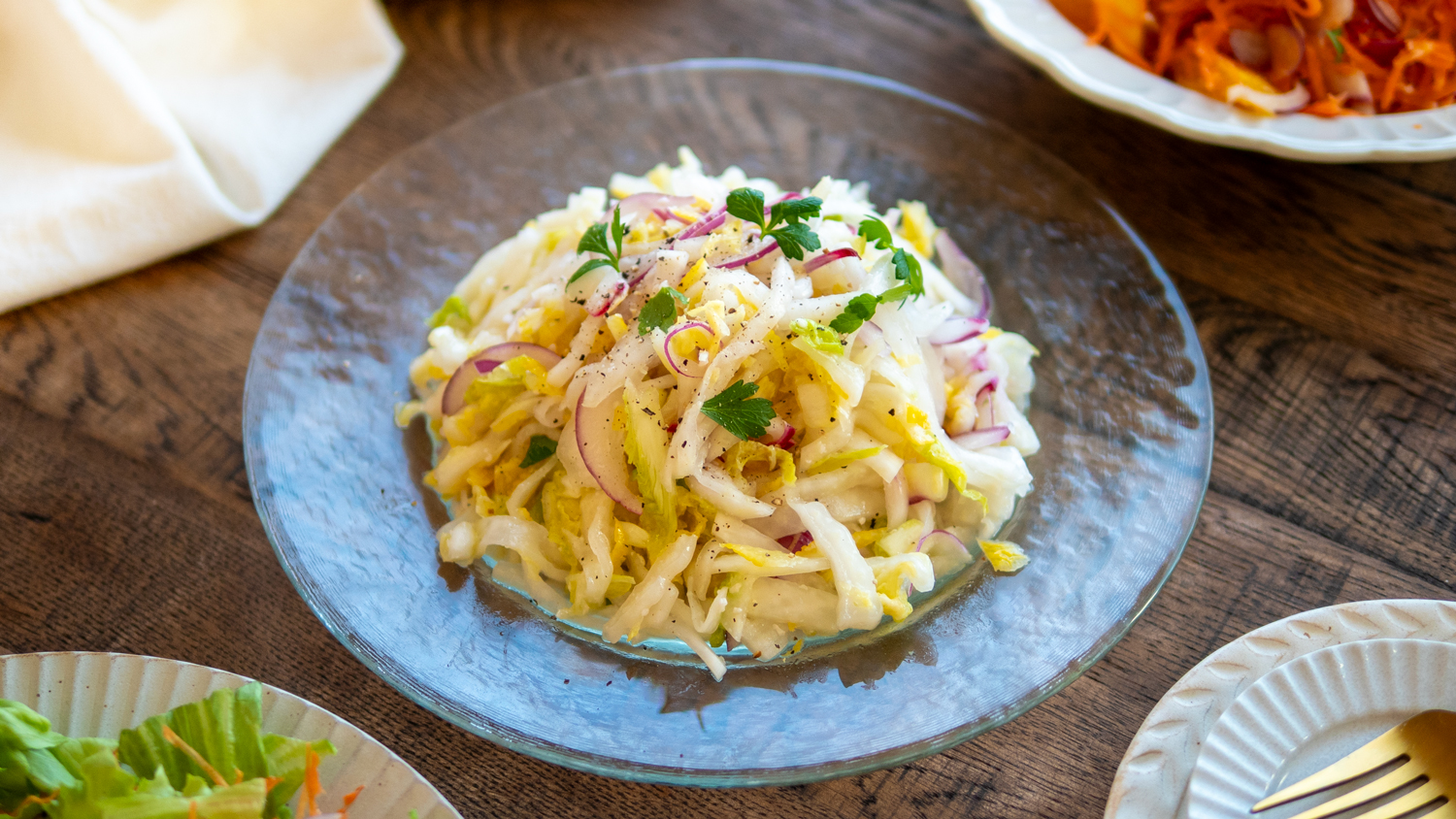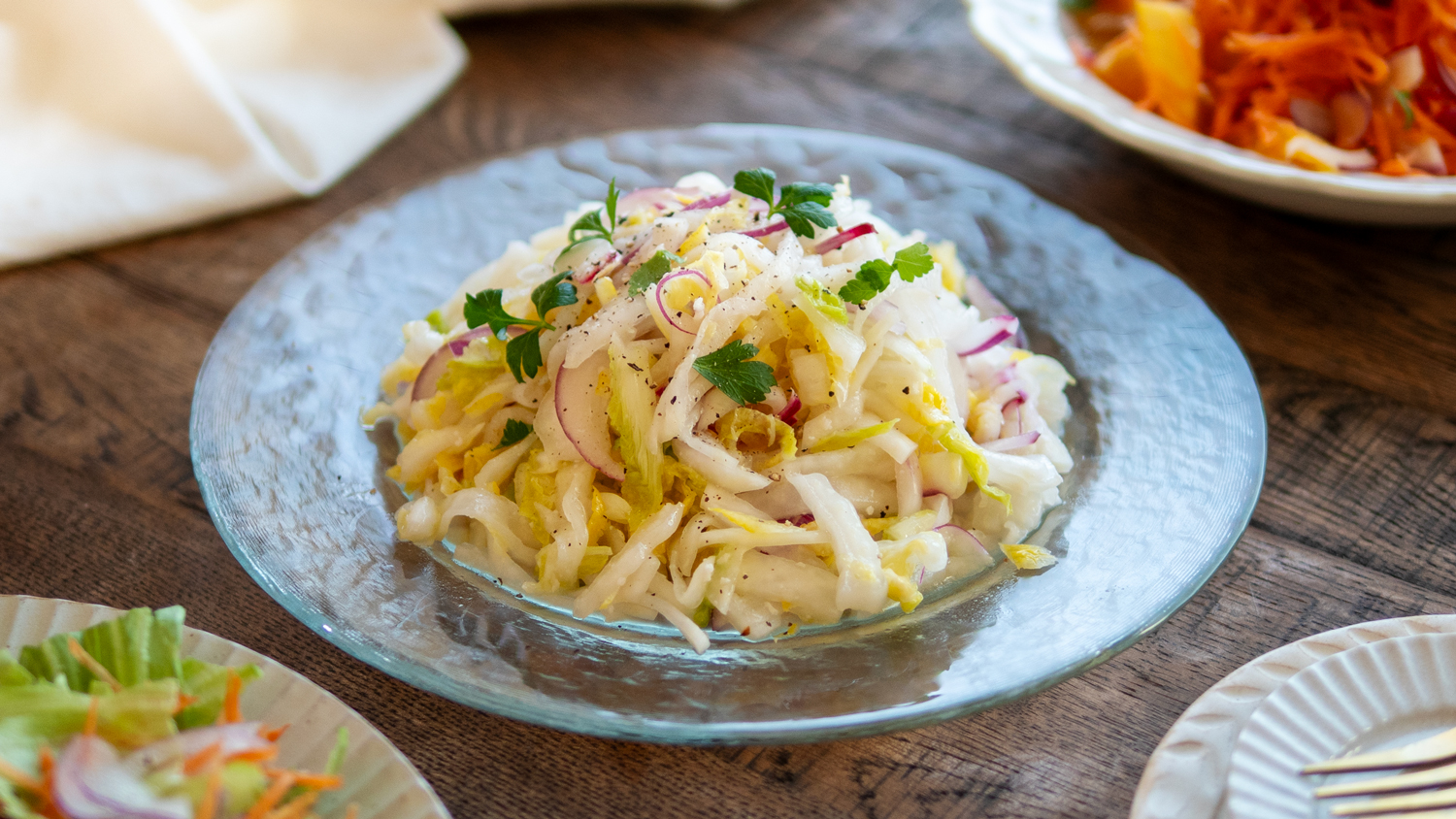 キャベツでも美味しく作れます。キャベツを使う場合は、白菜よりも繊維がしっかりしているため、塩麹をもみ込んだ後の置く時間を少し長め(15〜20分程度)にすると、しんなりして食べやすくなります。春キャベツの時期などは特におすすめです。