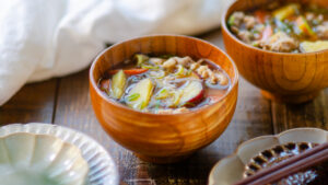 さらに、ニラ特有の香り成分「アリシン」は、糖質をエネルギーに変えるのをサポートし、代謝アップや疲労回復にも役立ちます。塩麹のうま味でお餅も野菜も美味しく食べられる、身体をいたわる一皿です。