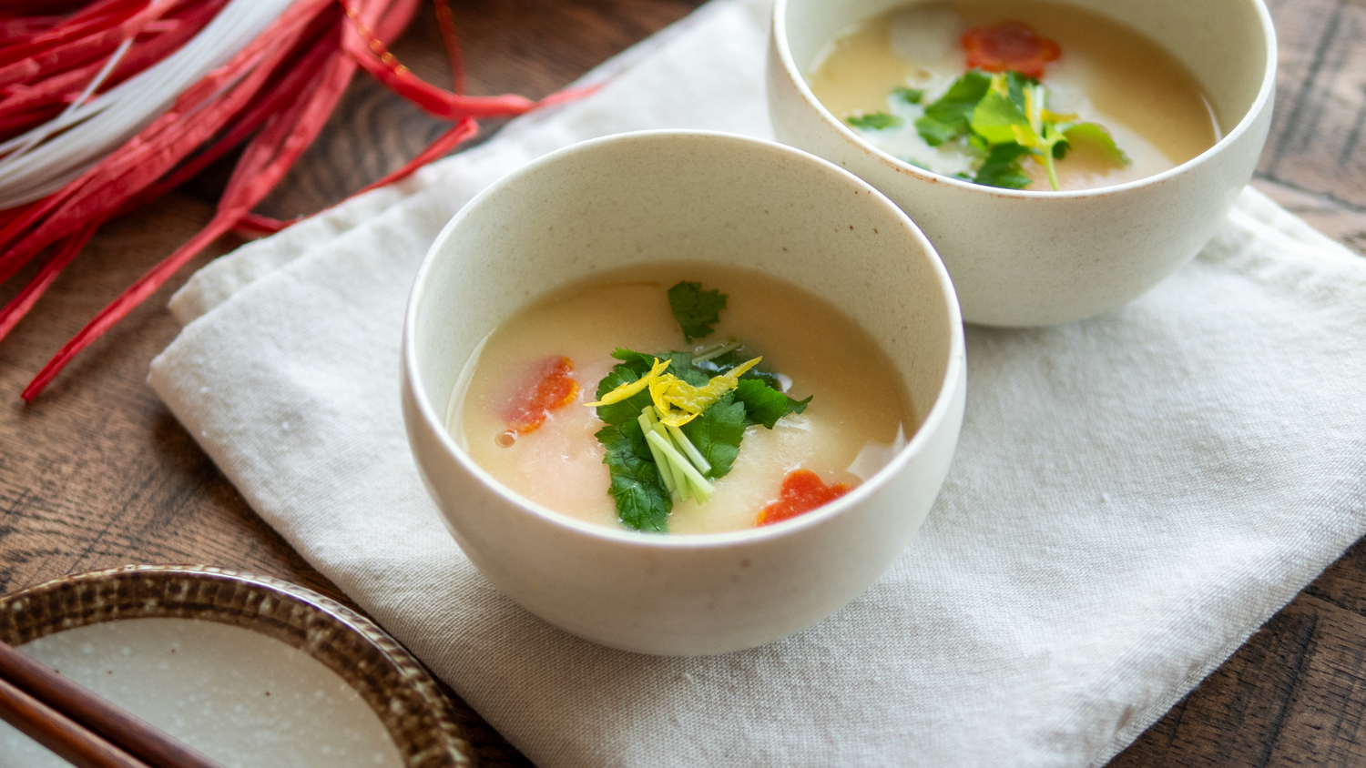 発酵食品である白味噌と、里芋に含まれるぬめり成分(水溶性食物繊維)が善玉菌のエサとなることで、腸内環境を整える相乗効果が期待できます。味噌を溶くときは必ず火を止め、少し温度が下がってから優しく溶き入れてみてください。お正月のご馳走で疲れ気味な胃腸を、優しく労ってくれる一杯になりますよ。