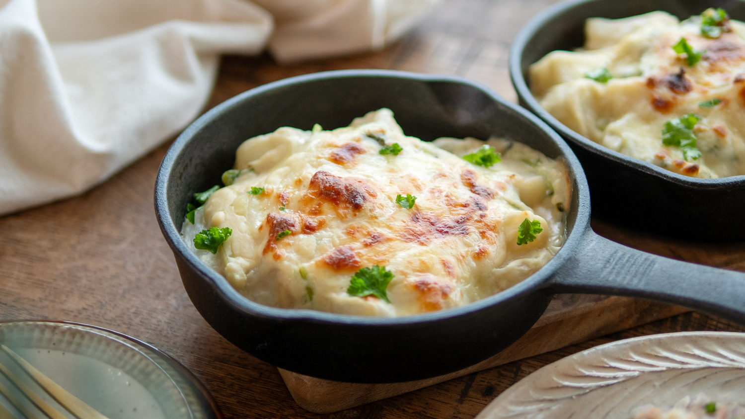 お正月の食べすぎで疲れ気味な胃腸をいたわるリセットごはんにぴったりなグラタン。