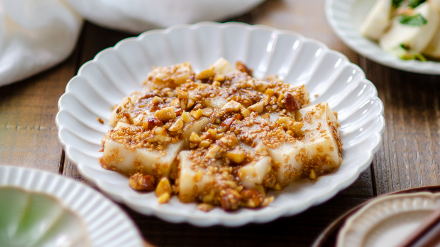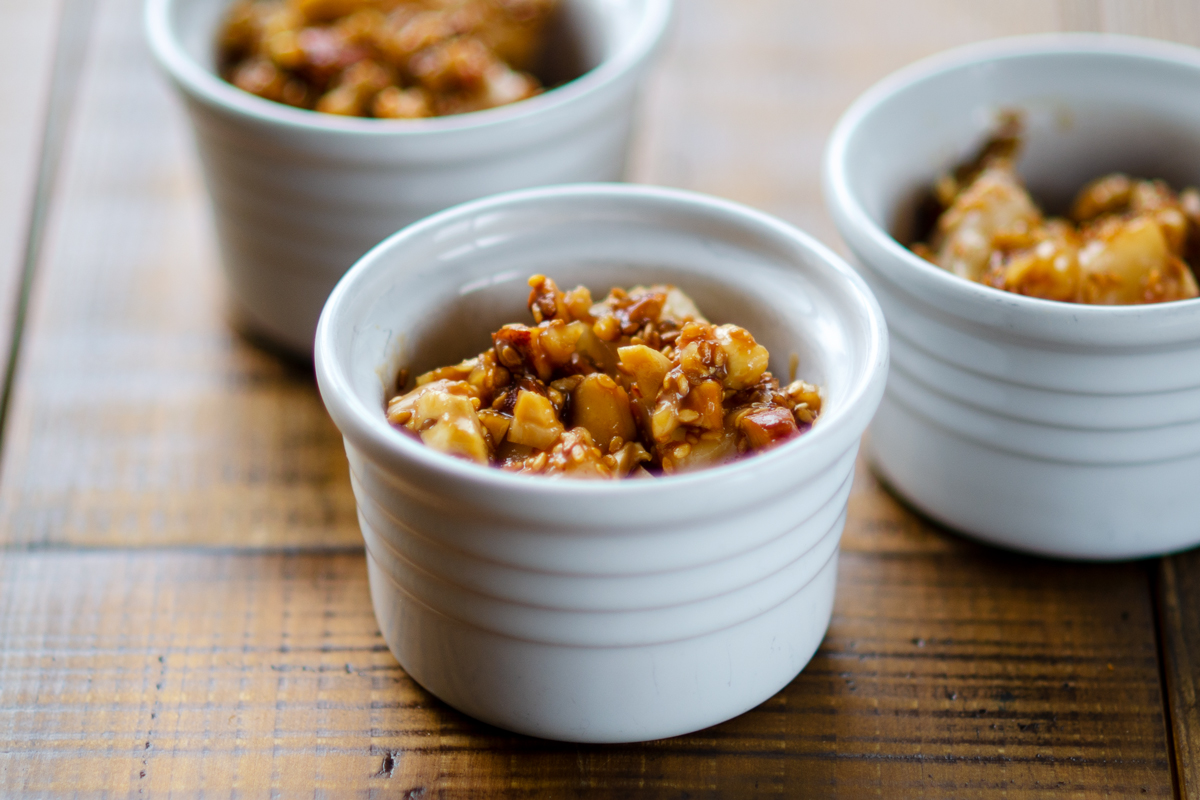 甘じょっぱいタレとカリッとしたナッツのアクセントは、一度食べるとやみつきになること間違いなし。