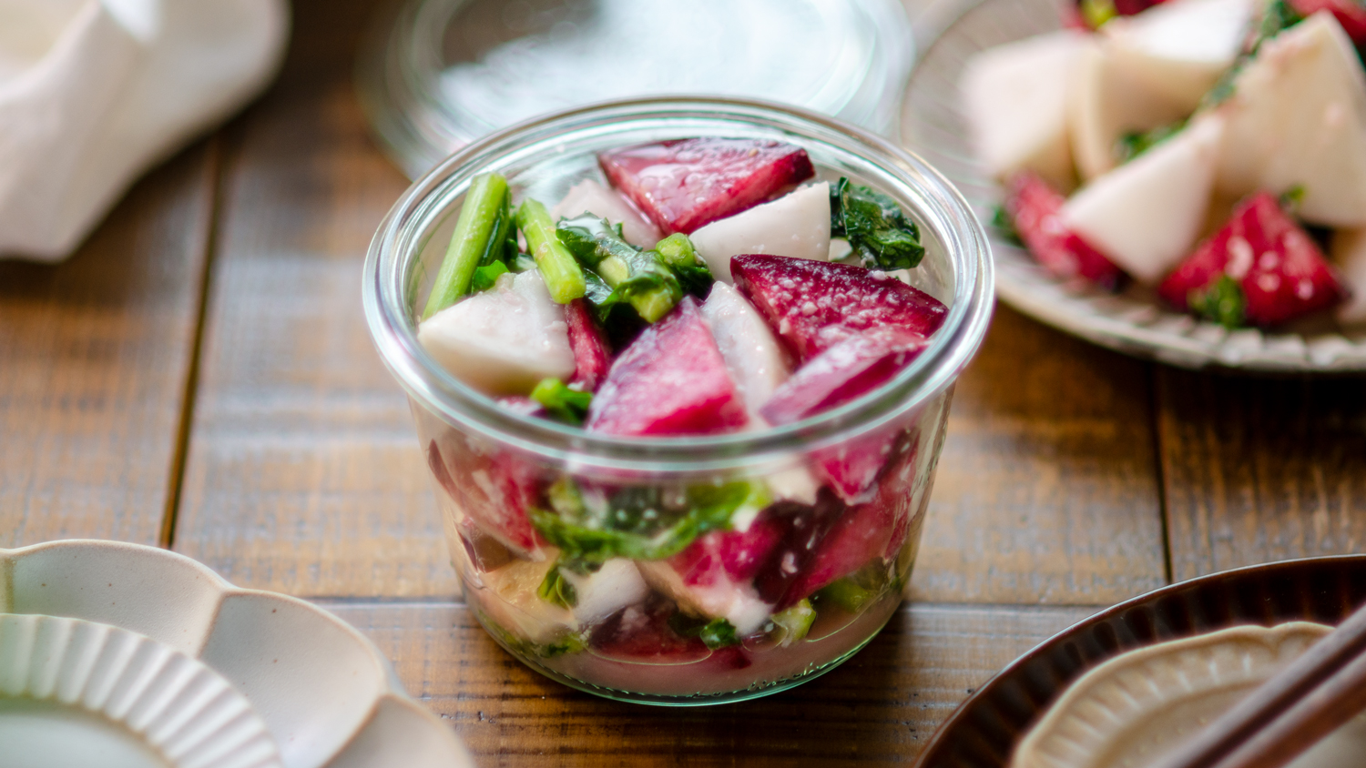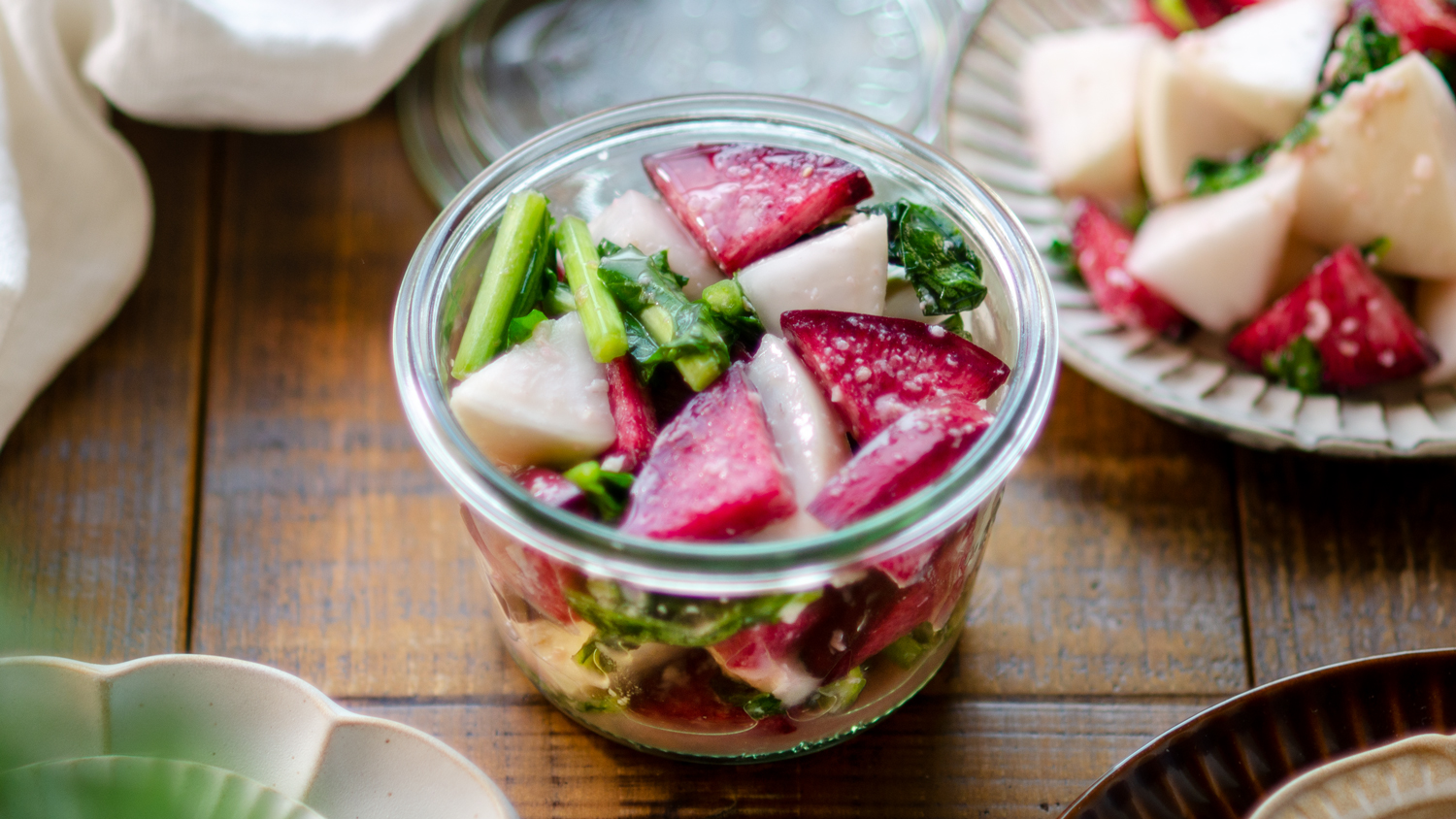 ハチミツに含まれるオリゴ糖は、お腹の環境を整える善玉菌のエサになると言われています。さらに、カブや大根には、熱に弱いビタミンCや消化酵素が含まれていますが、生で食べることでこれらを損なうことなく摂り入れることができます。食物繊維もたっぷり摂れるので、身体の内側からすっきりと整えたい方におすすめです。