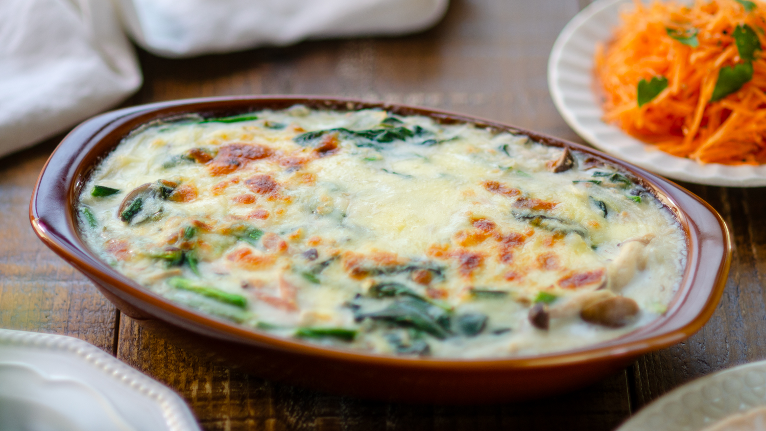 バターなし・小麦粉なしで、素材の優しさと塩麹のコクを活かしたグラタン。