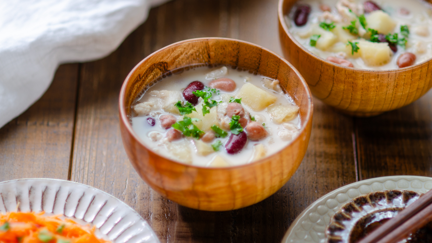 - 豆乳を加えた後は、煮立たせないように弱火で温めるのがポイントです。沸騰させすぎると分離して、見た目や口当たりが変わってしまうことがあります。
