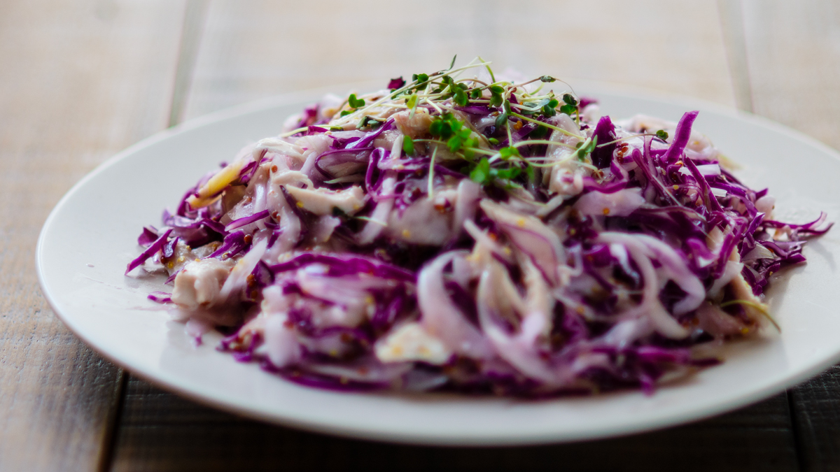 - 紫キャベツが手に入らないときは、普通のキャベツでも代用可能です。その際は、彩りに人参の細切りなどを少し加えると、見た目もより華やかに仕上がります。