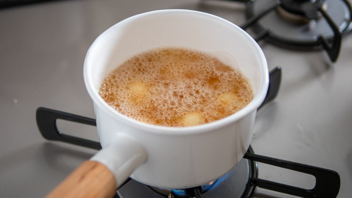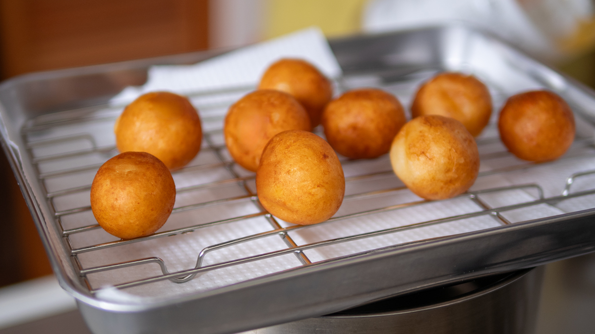 • ミルクパンなどの底が狭い小さな鍋を使って揚げると、少ない油でも深さが出るため、形を崩さずきれいに丸く仕上げることができます。