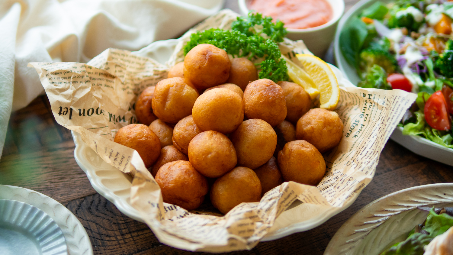 身近な材料で手軽に作れる、おやつにもぴったりの一品。外はカリッと、中はもちもちとした楽しい食感と、どこか懐かしい甘じょっぱい味わいをお楽しみください。