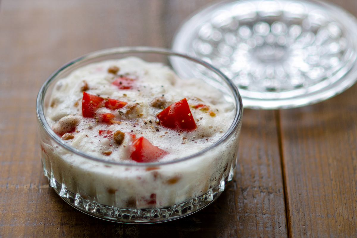- 納豆、塩麹、レモン汁を加えて混ぜ合わせる。