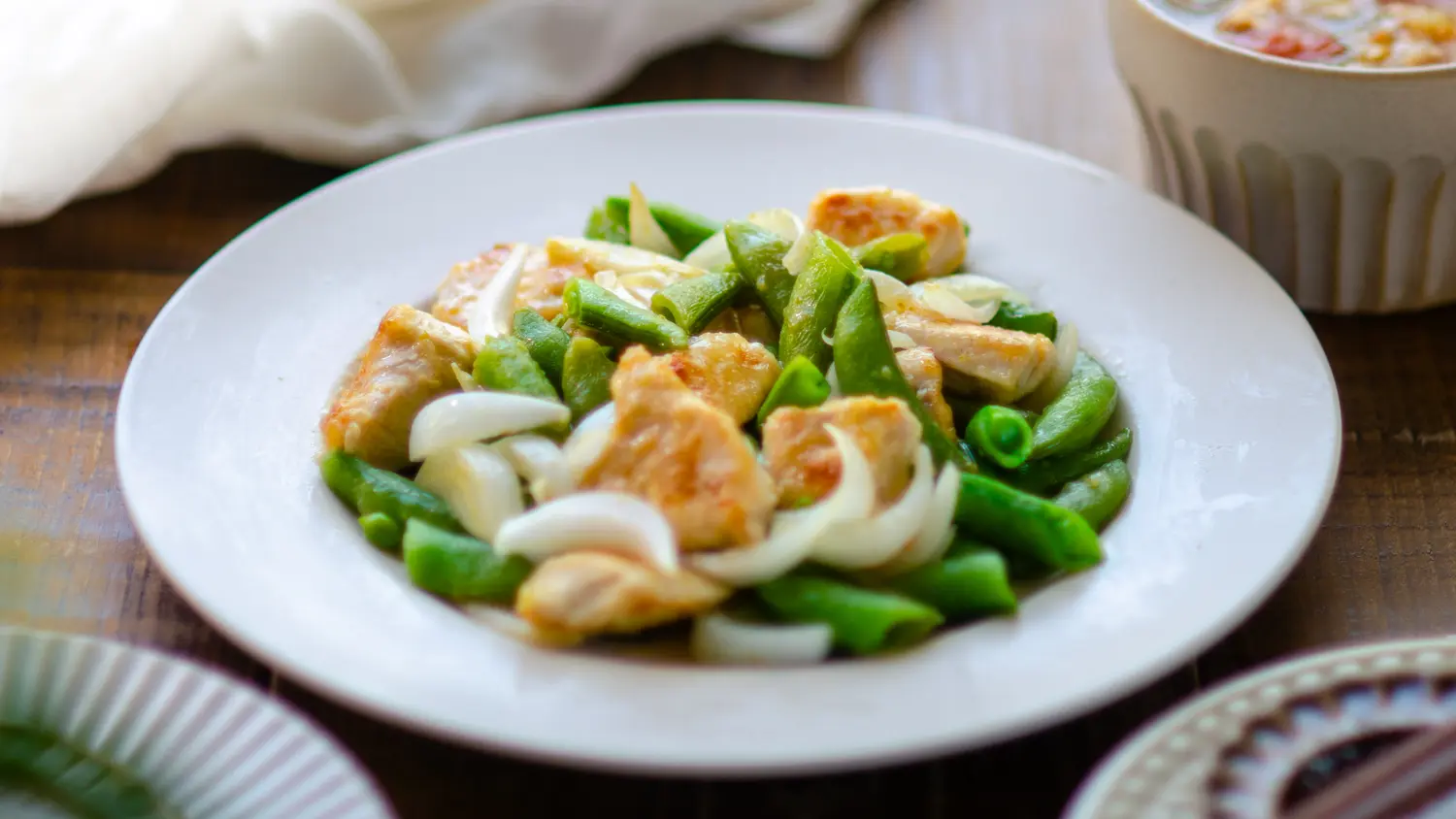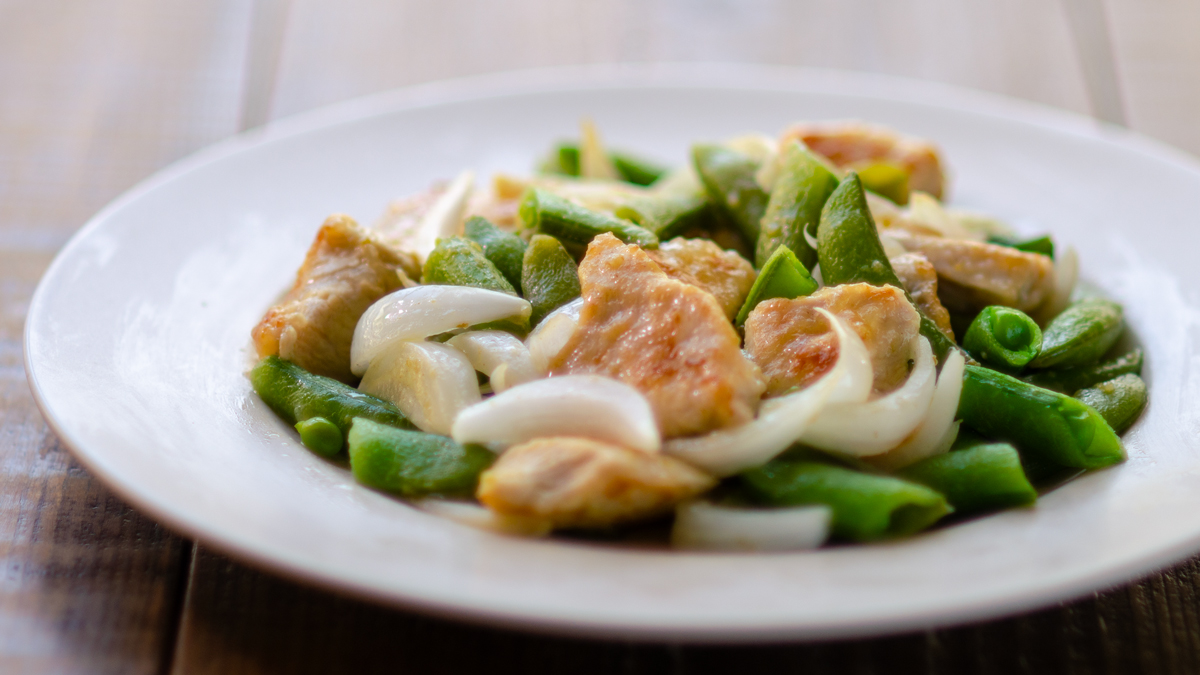 塩麹でしっとり!鶏むね肉とスナップエンドウの柚子胡椒炒めレシピ