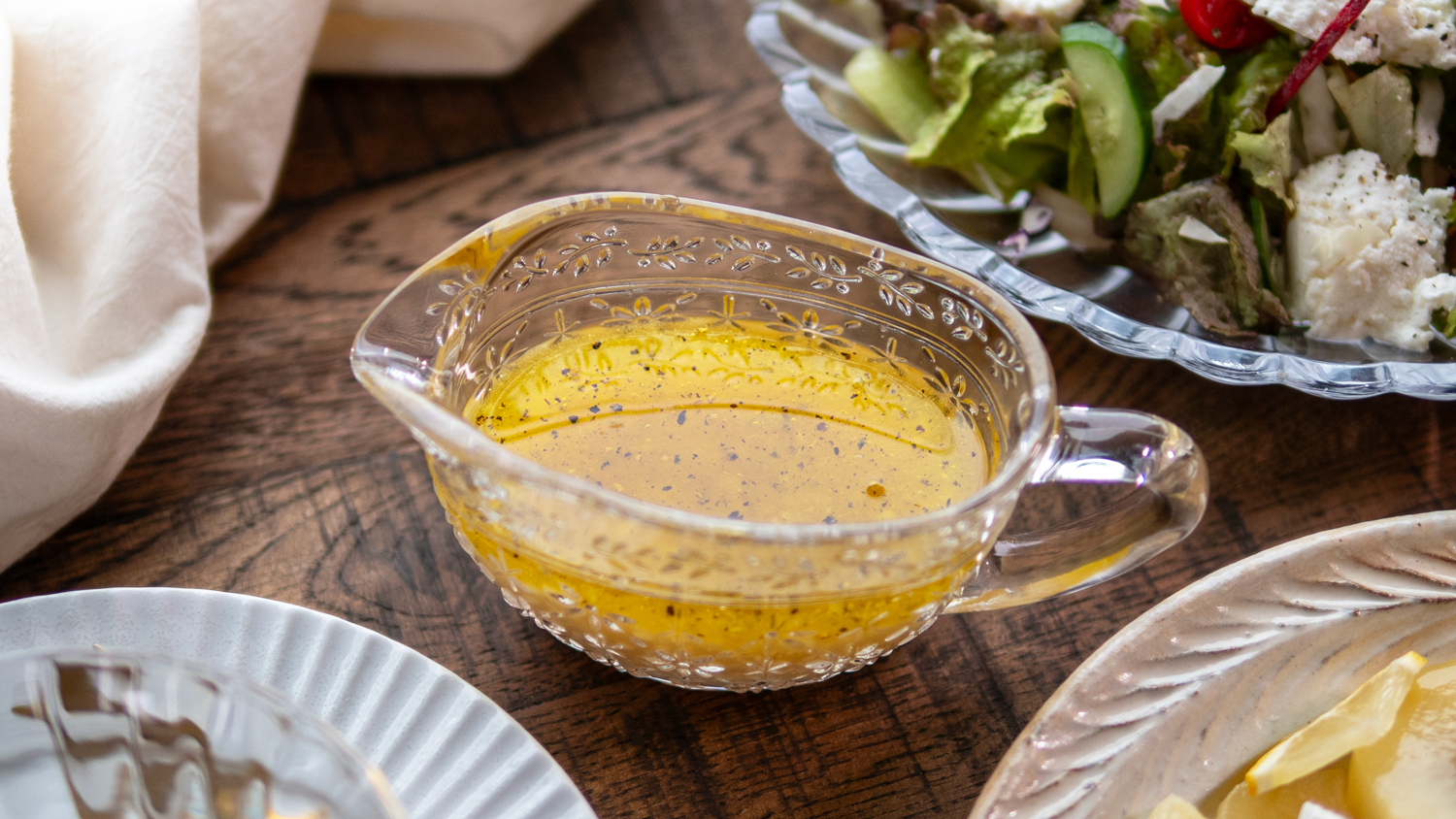 他のお酢でもお作りいただけます。白ワインビネガーやレモン汁を使うとより爽やかな洋風ドレッシングに、リンゴ酢を使うと酸味がまろやかになります。また、黒酢を使えばコクと深みが増し、味わい深いドレッシングに仕上がります。家にあるお酢で気軽に試してみてください。