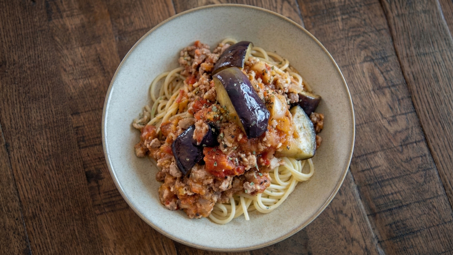 たっぷり使ったトマトの水分で煮込むミートソース。ジューシーな揚げナスを仕上げに加えてさっと和えました。甘酒と塩麹を入れることで自然なとろみが加わり、優しい甘さのコク深い味わいに仕上がります。野菜たっぷりヘルシーで食べ応えのあるレシピです。作り置きにもおすすめ。