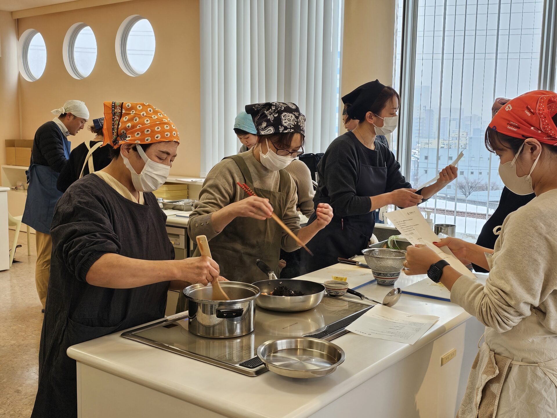 - 今回も班の方と協力しながら、試行錯誤しながら実習ができた事が嬉しかったです。調理はもちろんですが、これ美味しいね!こんな味なんだね!などと言葉を交わしながら実食をする時間がとても好きです。また次回も楽しみです。