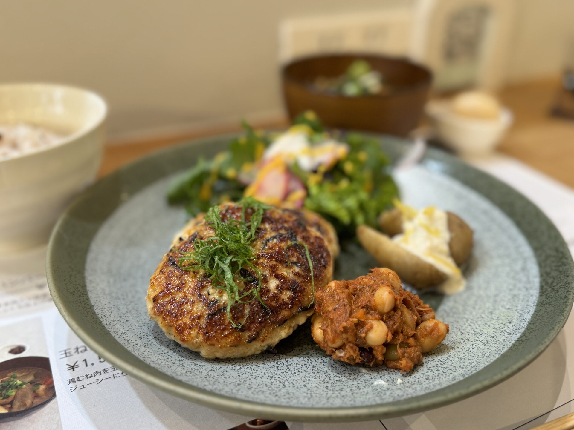 いただいたランチは、メインディッシュが豆腐ハンバーグの定食。